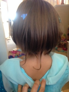 She opened the second of her French doors. “No, everything is NOT all right! Look at them,” she said in a panic I wasn’t expecting. I started scanning them for missing limbs, blood spurting in the length of feet, lipstick gone wild across cheeks. There it was, two little tails of hair hanging where the rest of my daughter’s curls used to land. I sucked in air the way I do when I think my husband is about to get into a head-on collision. The gasp he hates. “Oh…honey,” I said touching her head. “What happened?”